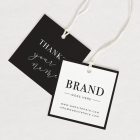 - Mẫu mác hình vuông: Hình vuông là kiểu dáng mác phổ thông, dễ gia công và phù hợp với nhiều phong cách thời trang. Thiết kế vuông giúp tối ưu không gian cho logo và nội dung như thông tin size, chất liệu. Loại mác quần áo hình vuông thích hợp các shop, cửa hàng thời trang nam, nữ trẻ trung, local brand cá tính.