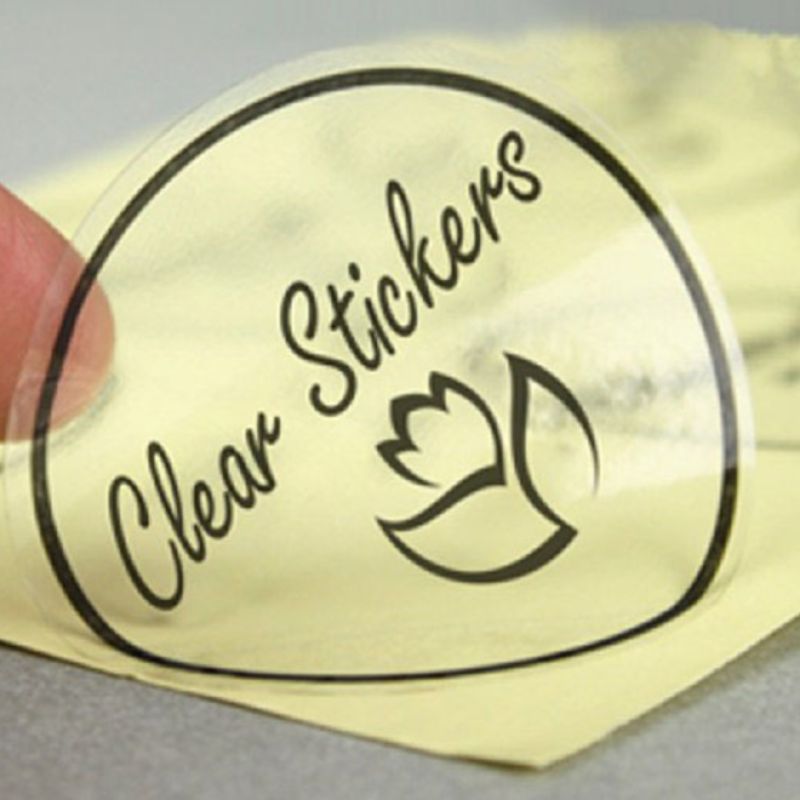 Đây là lựa chọn phổ biến cho các sản phẩm cao cấp như chai lọ mỹ phẩm, nước uống đóng chai hoặc bao bì thực phẩm sạch. Ưu điểm nổi bật là khả năng nhìn xuyên qua bề mặt sticker, tạo cảm giác sang trọng, tinh tế mà không che mất sản phẩm bên trong.