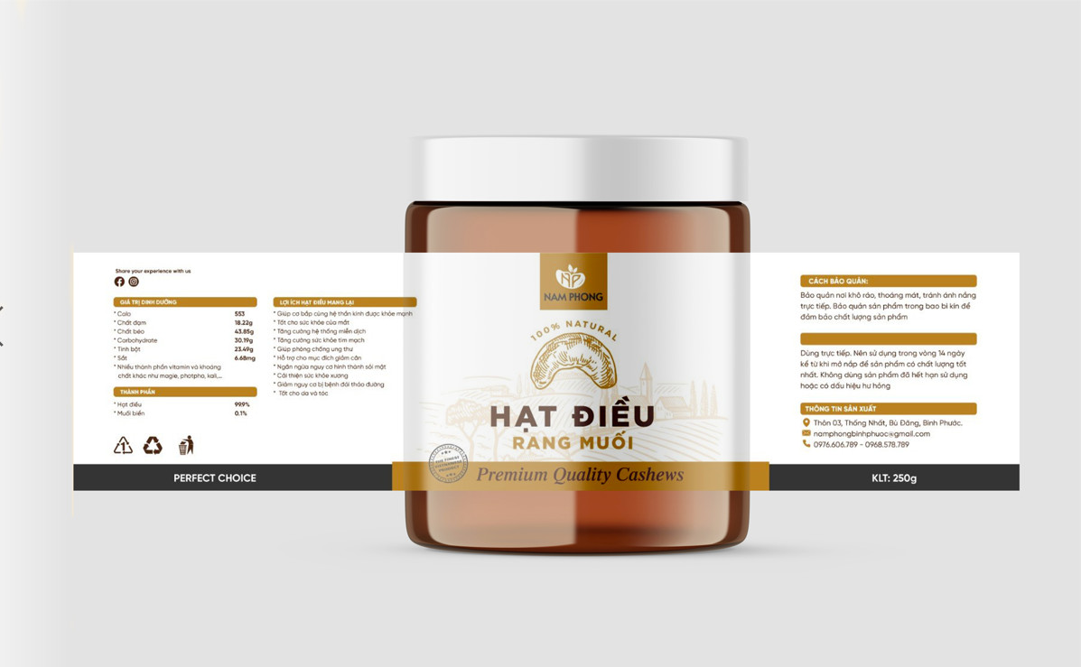 Dù là bán tại chợ, siêu thị, sàn TMĐT hay xuất khẩu, sản phẩm hạt điều đều bắt buộc phải có tem nhãn theo đúng quy định pháp luật. Một mẫu tem nhãn hạt điều rõ ràng, đầy đủ nội dung sẽ giúp sản phẩm lưu thông hợp pháp, tăng độ tin cậy với người tiêu dùng và khẳng định hình ảnh thương hiệu.